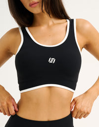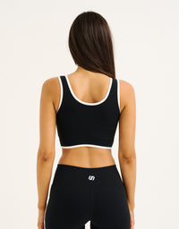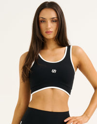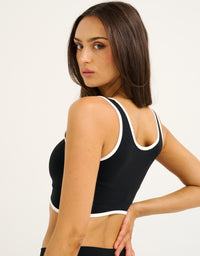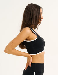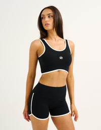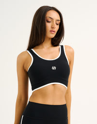 The Mode Contrast Crop pairs a clean & supportive silhouette with a pop of contrast trimming for a fresh, retro sport look that pairs perfectly with the matching shorts.