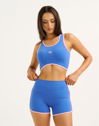 The Mode Contrast Crop pairs a clean & supportive silhouette with a pop of contrast trimming for a fresh, retro sport look that pairs perfectly with the matching shorts.